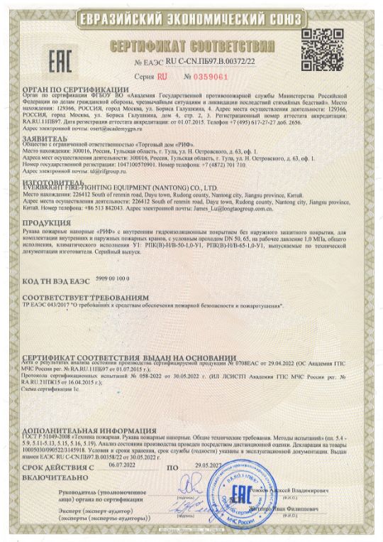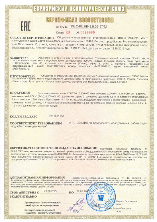 Надежность продукции группы предприятий "РИФ" подтверждается соответствующими сертификатами. Мы регулярно обновляем сертификаты в соответствии с законодательством.